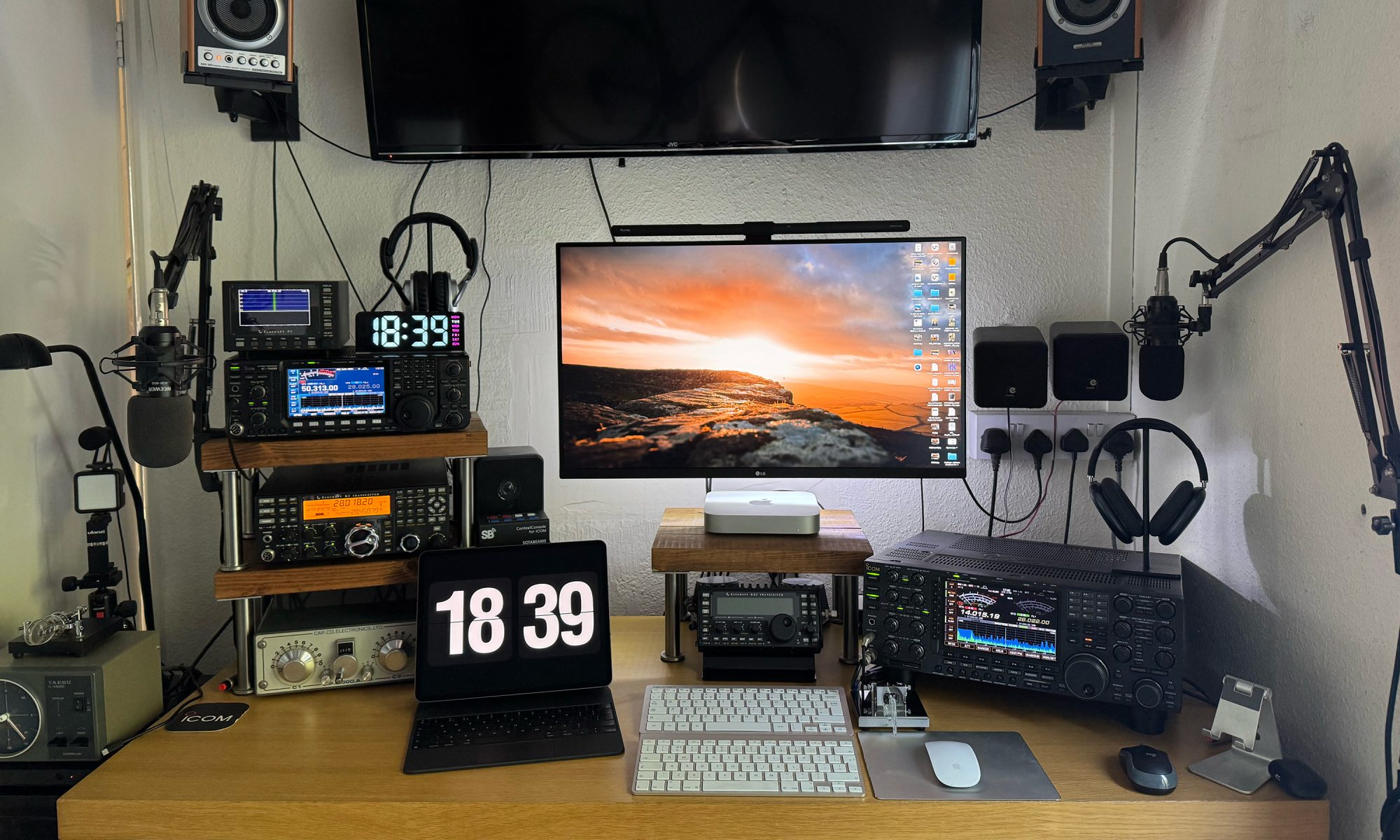 I love my glass desk ive had in the shack for many years, its a very expensive designer desk that was £1500 new, I paid £35 on Ebay for it, struck lucky, but ive recently reverted back to a wooden desk, why you might ask, simply because there is quite a bit of kit on the desk these days and im paranoid if something happened and the glass broke everything would end up on the floor, I think if I didnt have the IC-7800 I would have stayed with the glass desk as its rated for quite a bit of weight but the 7800 is a beast and weighs a ton, so for now its back to an old second hand Ikea desk, im contemplating making my own desk with used scaffold boards sanded down with iron metal legs, think that would look quite nice, but for now this will do.
